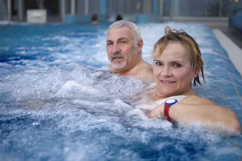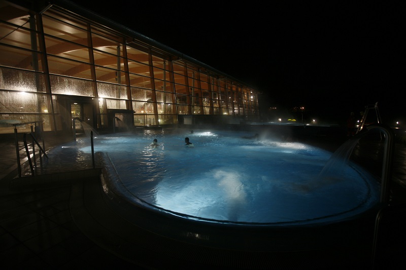 Outdoor brine pool with geysers and showers – guarantees relax.