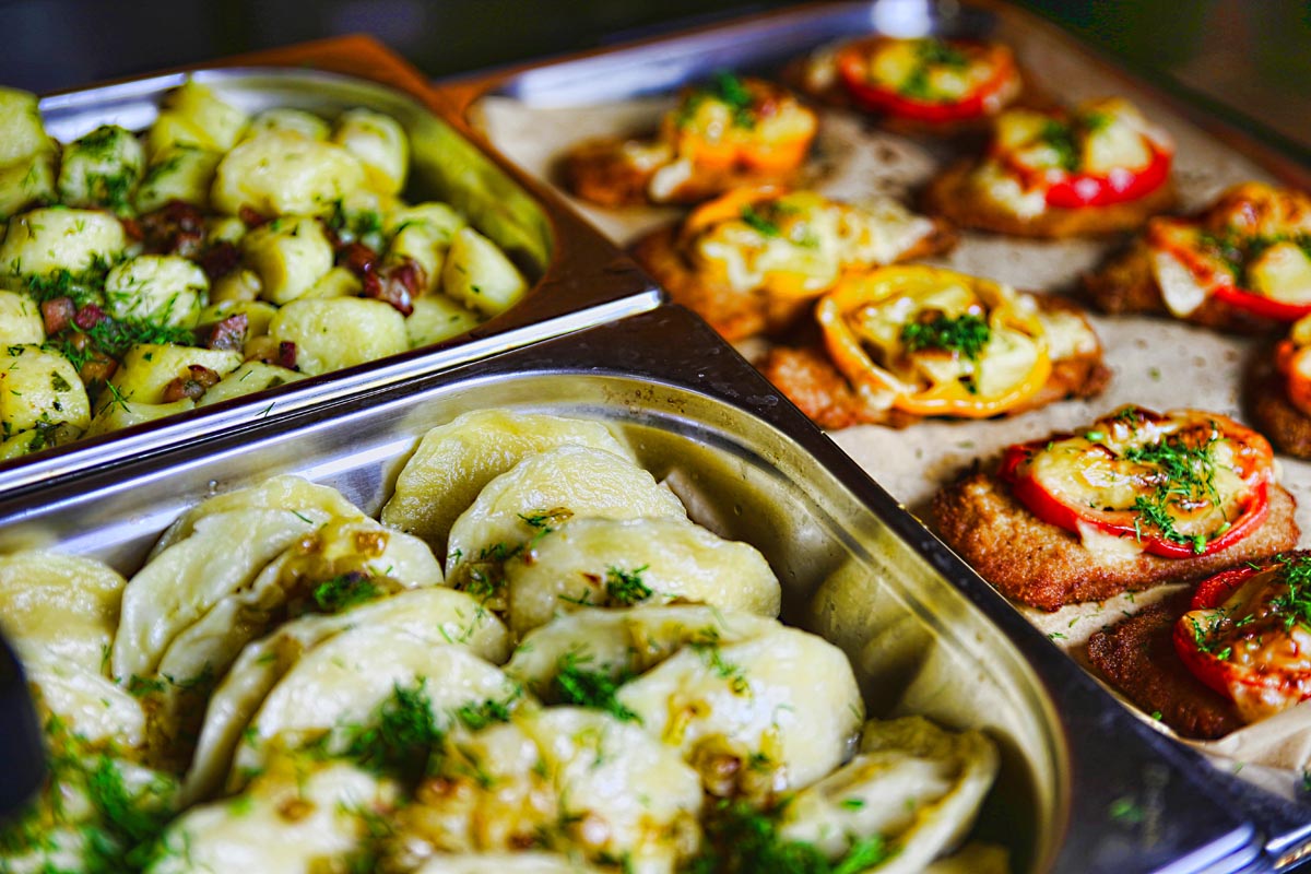 Oferujemy popularne, klasyczne dania kuchni polskiej, włoskiej, azjatyckiej i amerykańskiej. Mamy też specjalną ofertę dla dzieci, a amatorów surówek i sałatek zapraszamy do baru sałatkowego. W ofercie koktajle owocowe, soki, zimne napoje oraz słodkości.