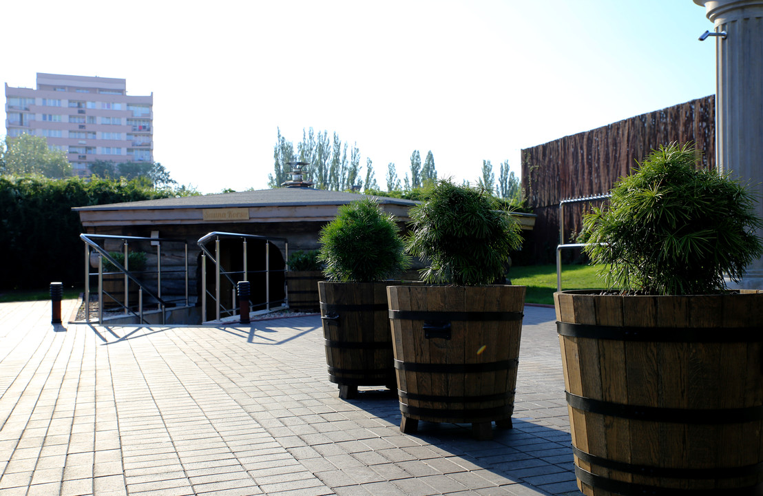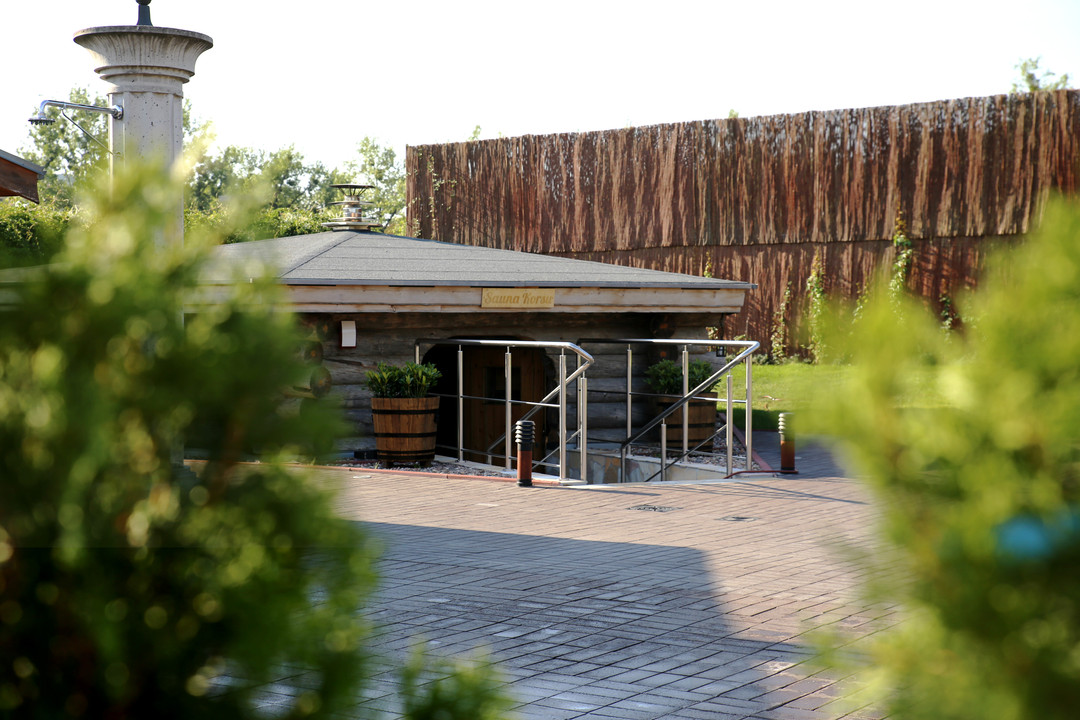 Sauna znajdująca się w ogrodzie zewnętrznym o temperaturze 85-95°C, zaś wilgotności 10 – 20%. Innowacyjność sauny ziemnej Korsu polega na nietypowej konstrukcji – pomieszczenie zostało zbudowane poniżej poziomu ziemi. W środku sześciokątnej sauny ziemnej znalazł się opalany drewnem kominek tworzący niepowtarzalną atmosferę. Sauna została zbudowana z drewna kelo, które stanowi najlepszy materiał do konstrukcji tego typu obiektów.Zabierz koniecznie dwa ręczniki do ułożenia pod ciało i stopy. Nie zapomnij o klapkach, które pozwolą Ci swobodnie poruszać się po ogrodzie.