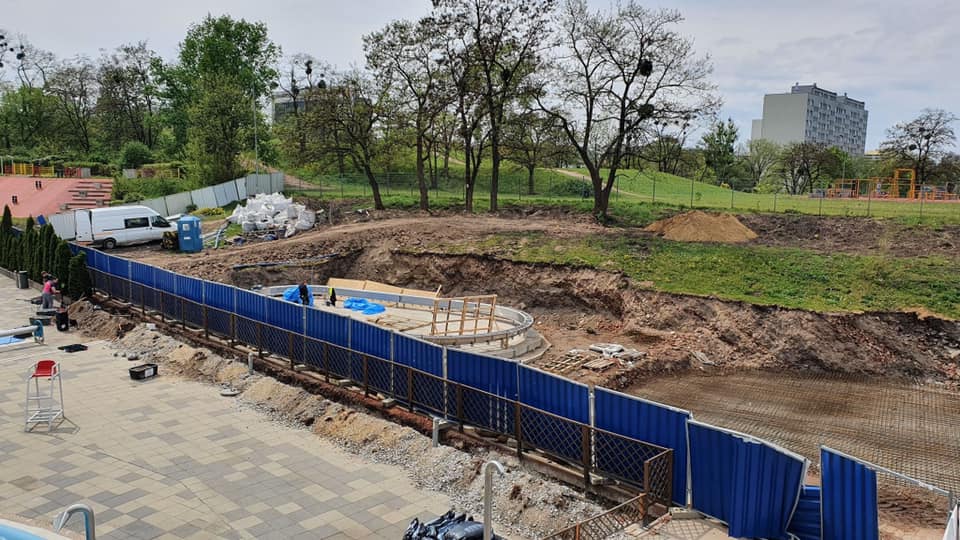 Na terenach zewnętrznych pojawiły się już budynki technologiczne oraz szatnie. Wszystko po to, aby w wakacje móc przyjąć więcej gości i zapewnić im komfortowe warunki do wypoczynku. Osobna kasa wejściowa oraz szatnie, które pojawią się od ulicy Petrusewicza rozładują wakacyjny ruch i usprawnią korzystanie z obiektu wszystkim gościom.