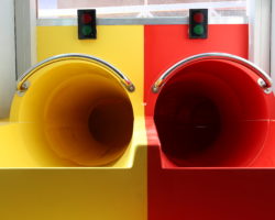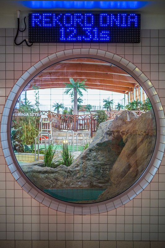 A ‘Strawberry-shaped’ landing area is an additional attraction of the multimedia slide; the descent may be continued by swimming into the Lazy River.