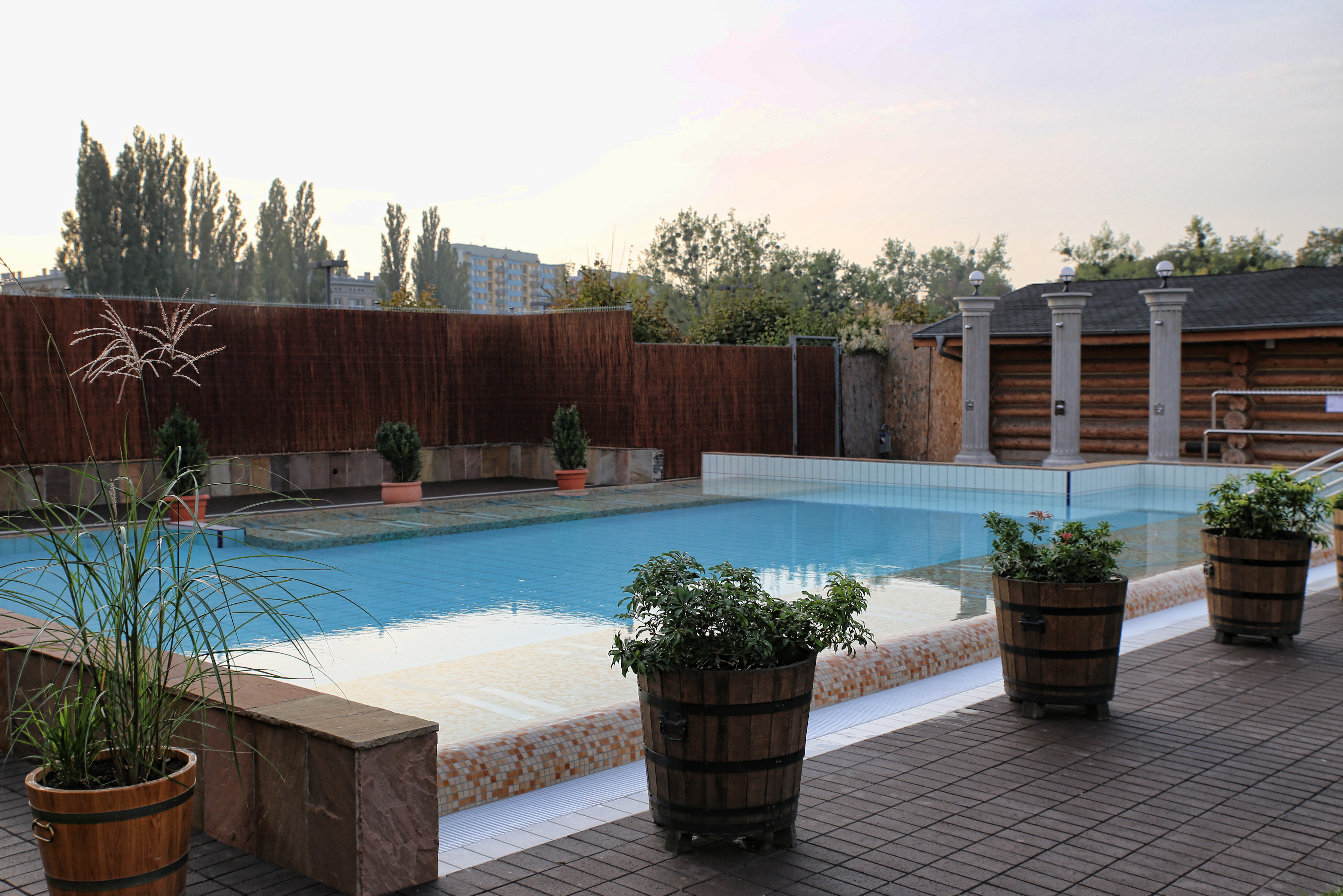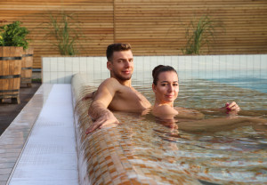Basen jest wyposażony w leżanki z hydromasażem oraz dysze masujące. Dostępny dla Państwa przez cały rok. Do basenu można wejść bez wychodzenia na zewnątrz, korzystając z przeszklonego przejścia łączącego budynek saunarium z terenami zielonymi lub bezpośrednio z ogrodu.